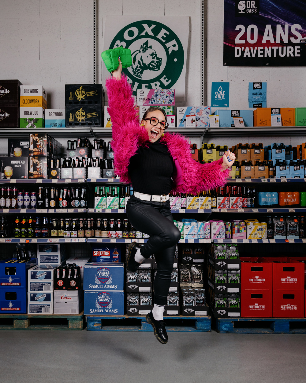 Indem man zunächst eine Ikone erfindet: die Mixologin. Sie verkörpert völlig das Potenzial des Angebots und der Beratung von Halle aux Boissons mit Extravaganz und Humor. Auch Sie können zum Cocktail-Star werden! In dieser Kampagne dreht sich alles um Farben. Eine farbenfrohe Figur, die Farbe ihrer Kleidung, ihres Make-ups, der Getränke und der verschiedenen Lichteffekte auf dem Set.