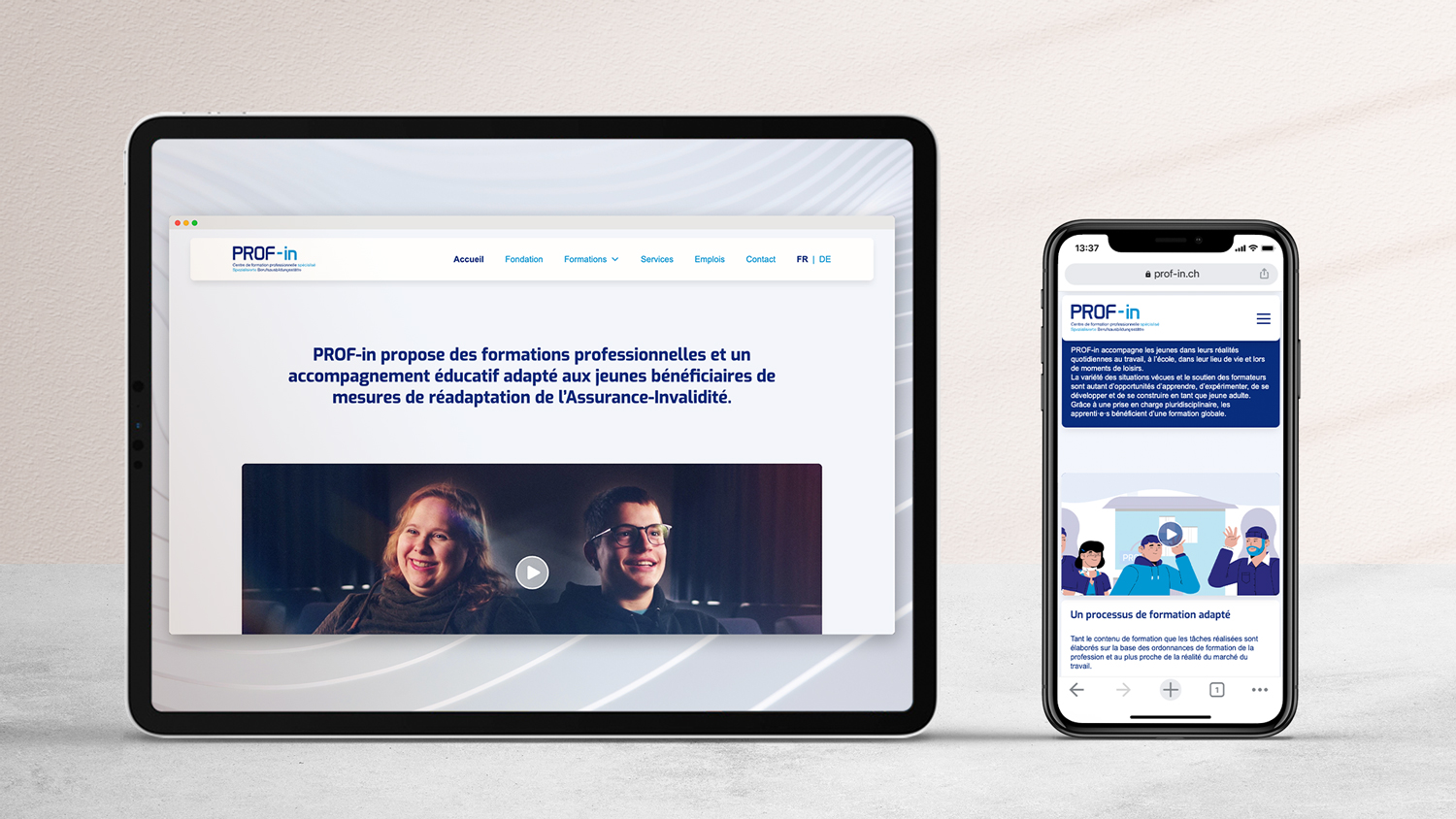Pour présenter l'étendue de leurs 12 formations professionnelles, leur accompagnement éducatif et infrastructure, PROF-in a fait peau neuve : nouveau site internet et nouvelle identité digitale, afin de représenter au mieux le travail de la fondation auprès des jeunes et amener un côté plus vivant et profondément humain de l'institution.