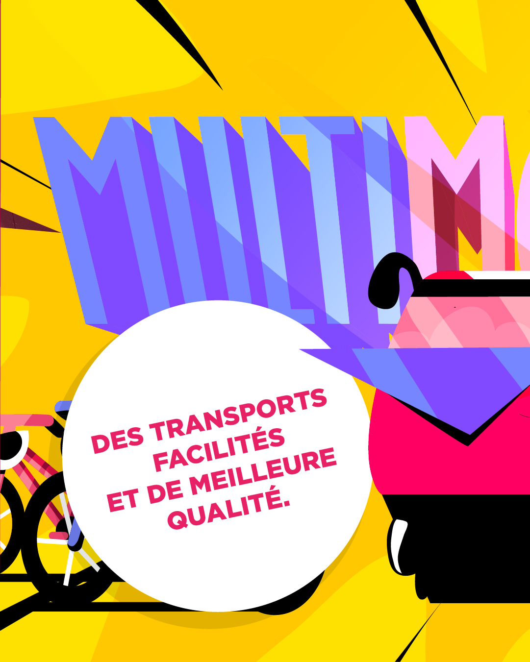 Basée sur un univers graphique fort et pertinent, la campagne illustre la vision future des TPF : Nous sommes venus poser une couche de storytelling vivante et colorée sur des photos prises dans tout le canton.